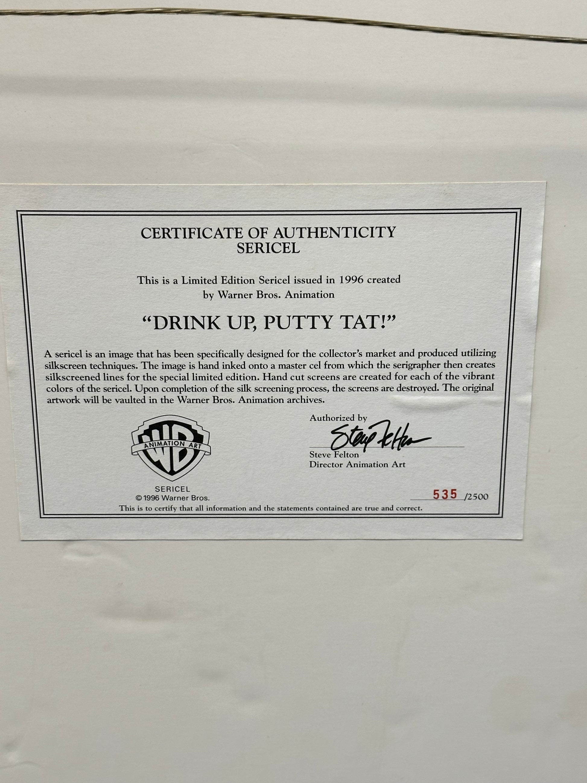 19x17 1996 Warner Bros. sericel "Drink Up Putty Tat"