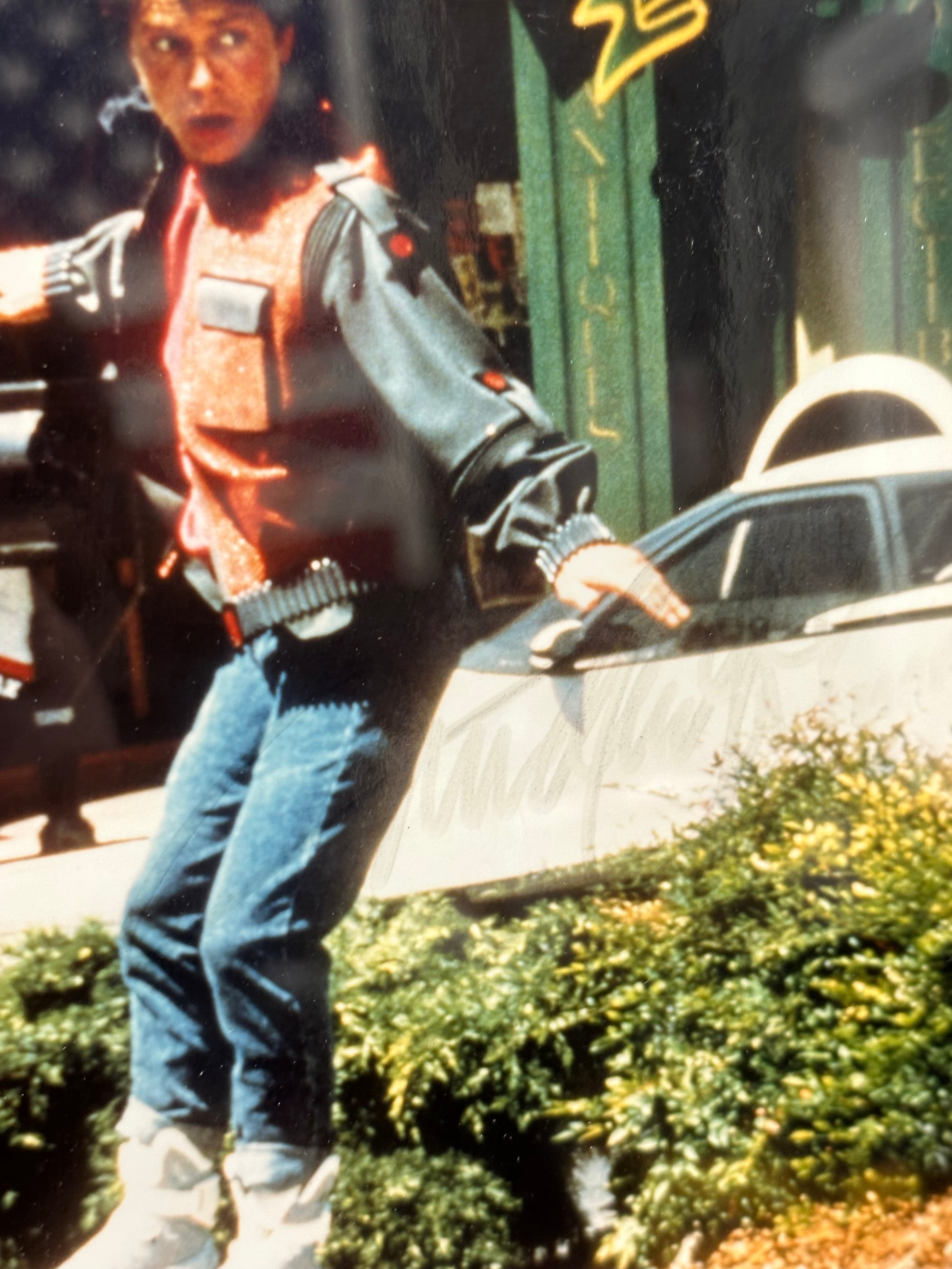 26x16 Framed Dual 8x8 Back to The Future signed by Michael J Fox & Cristopher Lloyd