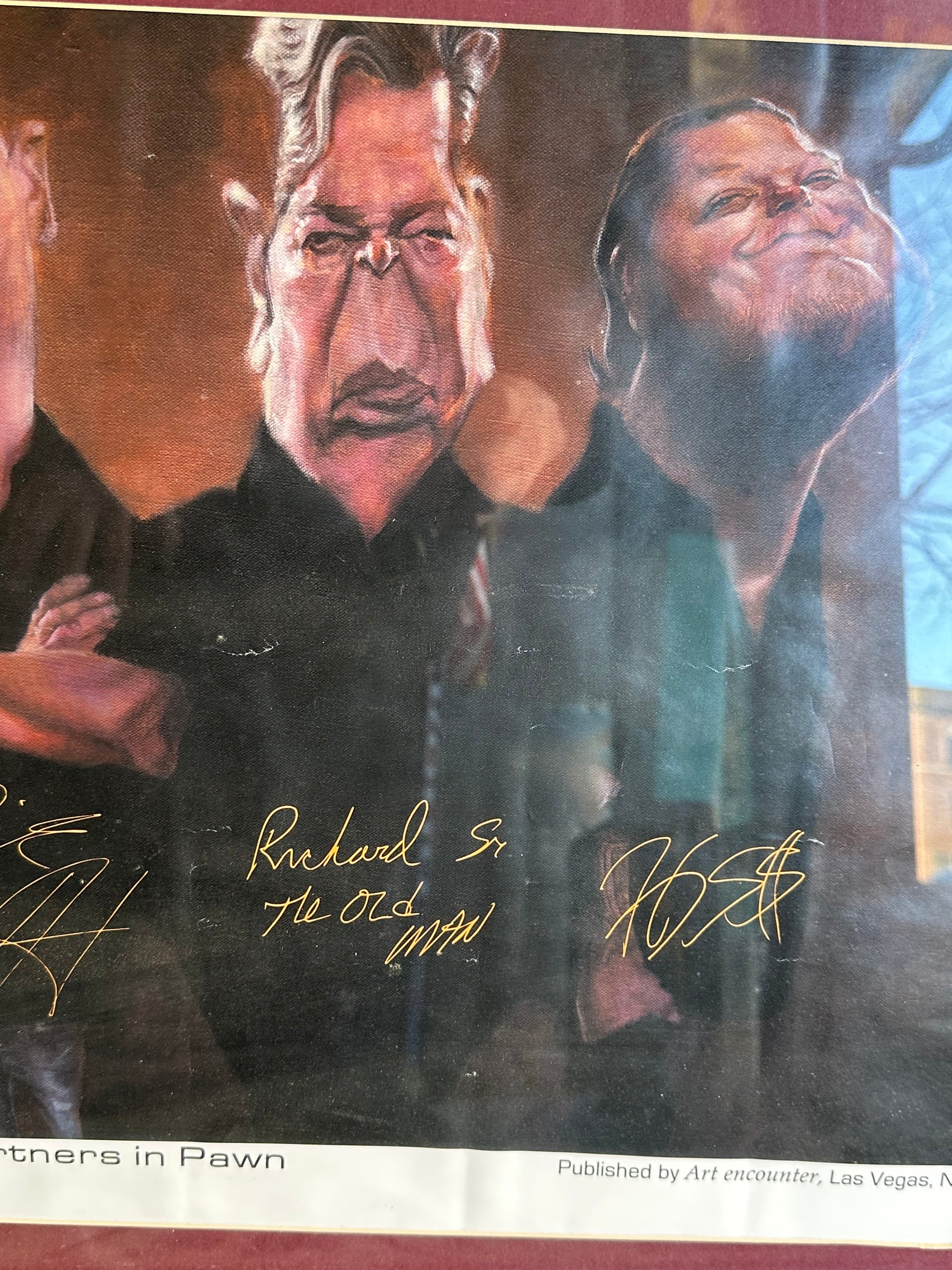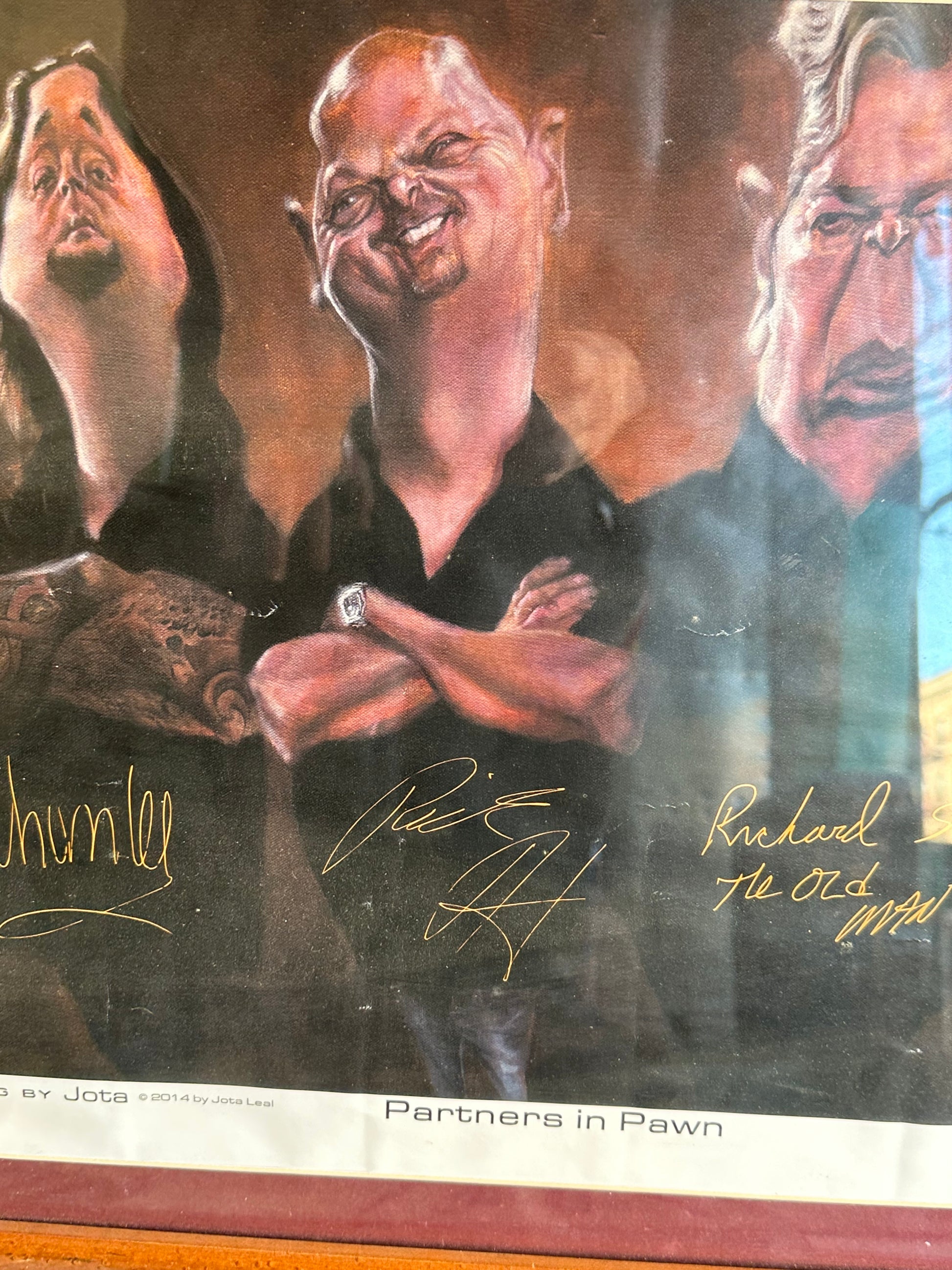 31x20 Framed Facsimile Partners in Pawn Start, Chumlee, Rick Harrison, Big Hoss and Old Man